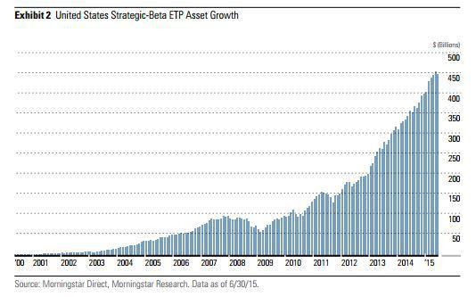 在美国,自本世纪初问世以来,smart beta(strategic beta) 截止2015年年中已经达到4500亿美元的规模。