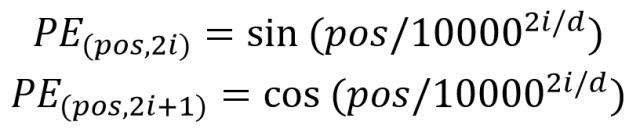 位置 Embedding 用 PE表示,PE 的维度与单词 Embedding 是一样的。PE 可以通过训练得到,也可以使用某种公式计算得到。在 Transformer 中采用了后者,计算公式如下: