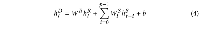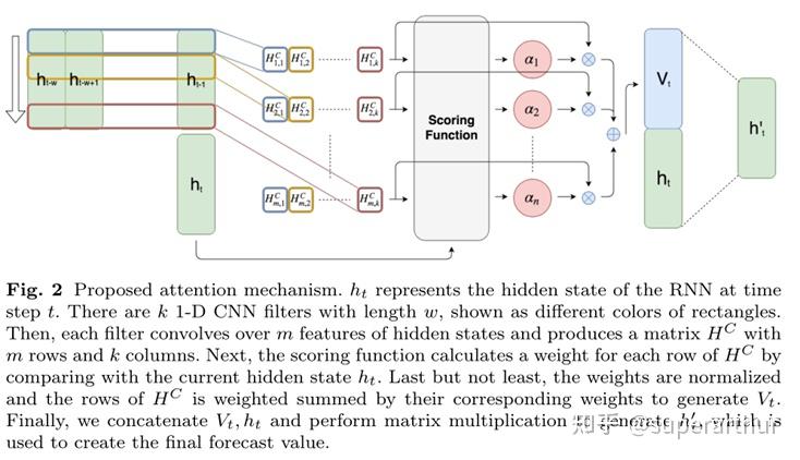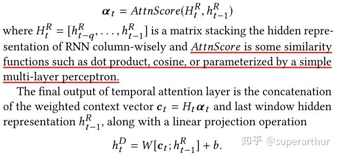 然而,重复跳跃层需要一个预定义的超参数p,这在非季节性时间序列预测中是不利的,或者其周期长度随时间是动态的。为了缓解这个问题,我们考虑了另一种方法,注意机制,它学习输入矩阵每个窗口位置的隐藏表示的加权组合。