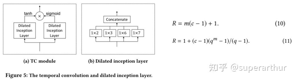 时间卷积模块参考了GooleNet中inception的结构,可以发现具有多个频率的时间模式,也可以处理很长的序列;太大无法表示短期信号,太小无法表示长期信号。网络的接收域大小也随着q的隐藏层数的增加而呈指数增长