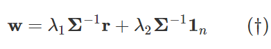 1.如果任何一组风险资产都不能配置出无风险资产,那么 Σ 是可逆的,即公式 (†) 成立;