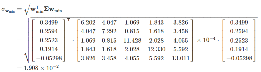 根据第二节中的拉格朗日乘子方法,标准差最小的配置权重向量满足
