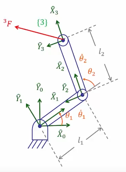 由于操作臂的链式结构,力和力矩是从一个连杆向下一个连杆传递的,但是这个传递的机制是怎样的呢?接下来我们来了解一下,为方便理解,我们先从最简单的静力开始思考与理解。