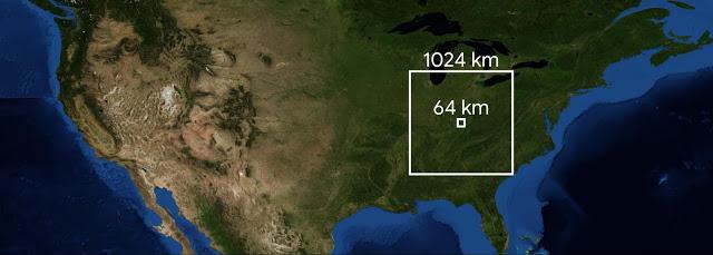 MetNet 不依赖于大气动力学领域的物理定律,它是通过反向传播学习,直接从观测数据中预测天气。该网络使用由多雷达/多传感器系统(MRMS)组成的地面雷达站,以及提供大气中云层自顶向下的视图的卫星系统测量得出的降水量估计值。这两个数据源均覆盖美国大陆,并提供可由网络有效处理的图像类输入。模型以每 64km*64km 执行一次,覆盖整个美国,分辨率为 1 km。然而,与这些输出区域相比,输入数据的实际物理覆盖范围要大得多,因为它必须考虑到在进行预测的时间段内云和降水场的可能运动。