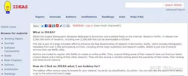 IDEAS拥有世界上最大的文献网上经济学工作论文集,并与RePEc建立连接,收录超过170种经济学期刊。