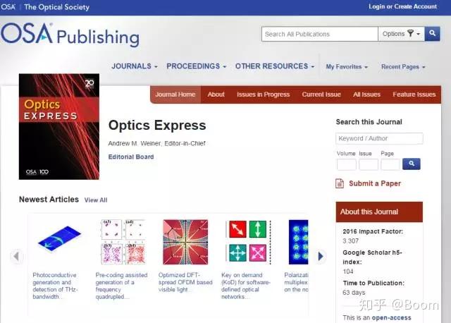 Optics Express由美国光学学会创办,刊登光学技术领域方面的报告和新进展。提供1997年创刊以来的全部文献,以平均49天一期的速度出版,并支持彩色图像和多媒体文件。