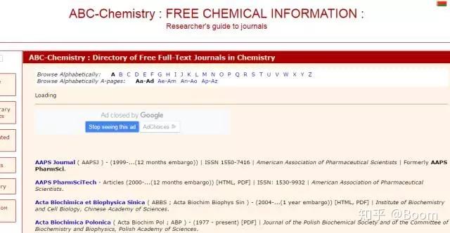 收录了国际权威化学协会和出版社的网络版化学期刊的网址链接,可按刊名首字母顺序浏览,分为长期免费和免费使用两种,不足是网站打开较慢,查找不是特别便利。