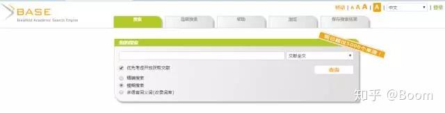 Base是德国比勒费尔德(Bielefeld)大学图书馆开发的一个多学科的学术搜索引擎,提供对全球异构学术资源的集成检索服务。它整合了德国比勒费尔德大学图书馆的图书馆目录和大约160 个开放资源(超过200 万个文档)的数据。