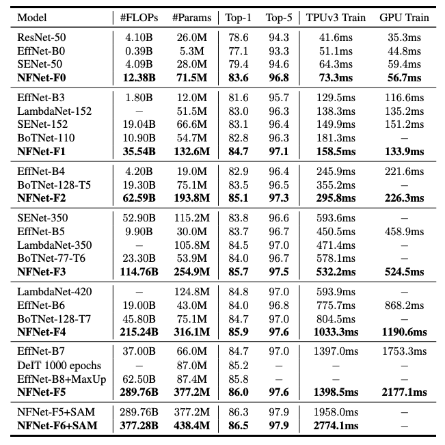 NFNet 是不做归一化的 ResNet 网络。具体而言,该研究贡献有以下几点: