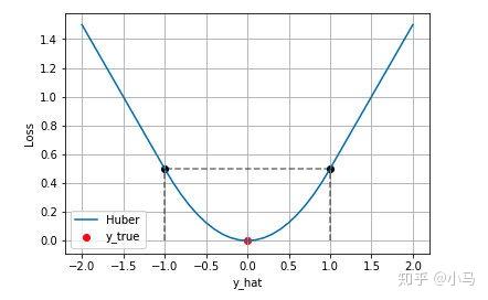 Huber Loss是一种将MSE与MAE结合起来,取两者优点的损失函数,也被称作Smooth Mean Absolute Error Loss 。其原理很简单,就是在误差接近0时使用MSE,误差较大时使用MAE,公式为: