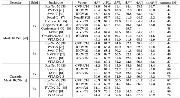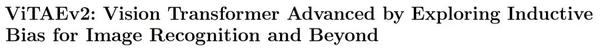 [1] Zhang Q, Xu Y, Zhang J, et al. ViTAEv2: Vision Transformer Advanced by Exploring Inductive Bias for Image Recognition and Beyond. arXiv preprint arXiv: 2202.10108, 2021.