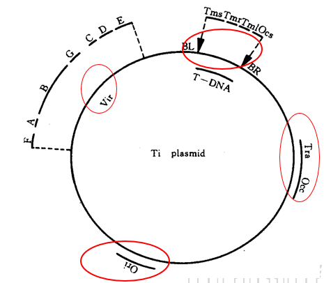 Vir区:该区段上的基因能激活T-DNA转移使农杆菌显出毒性