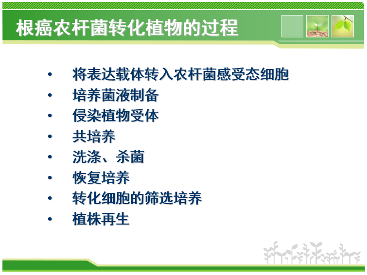 ② 愈伤组织可继代扩繁,因而由转化愈伤可培养获得大量的转化植株。