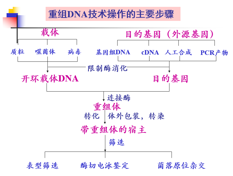 大肠杆菌基因表达载体的构建,应包括这些基因元件:复制子、启动子、终止子、核糖体结合位点、密码子、选择标记等。
