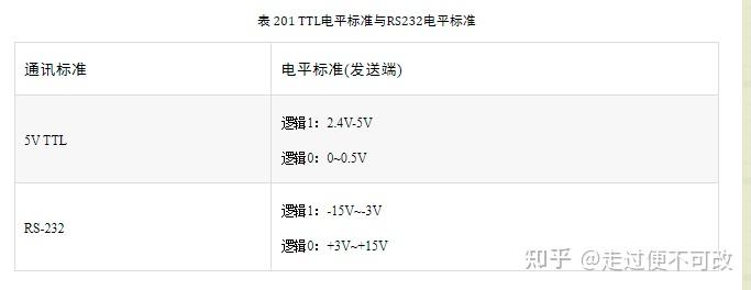 表 201 TTL电平标准与RS232电平标准