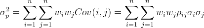 组合的风险为: