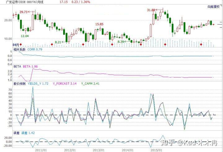 通过回归分析得到β=1.96,即以399001为Benchmark,000776的系统风险水平。