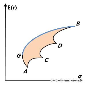 由于投资者是理性的,所以他们永远不会选择AG段的组合。因为承担相同的风险,在GB段一定存在收益更高的组合。