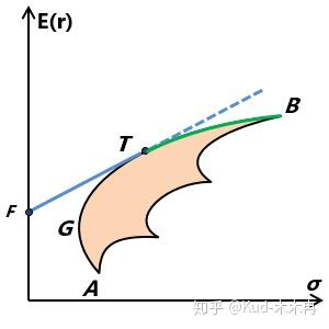 如果允许以无风险利率借贷,那么线段FT延长线上的点就是可行的投资组合,其优于TB段上的点。所以有效前沿就是FT这条射线。