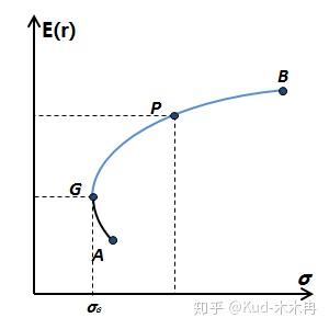 我们把两个资产所有可能组合中风险最小的称为全局最小方差证券组合,即图中G。